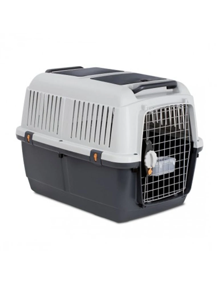 Met deze transportbox van Duvo+ ‘Buddies on the gooo’ neem je jouw buddie overal mee naartoe. Handig voor zowel korte trips als voor lange reizen met de wagen of zelf met het vliegtuig, want de Bracco is IATA gekeurd en voldoet dus aan de strenge eisen om uw dier met eender welk vervoermiddel veilig te transporteren. De box is robuust en heeft een ruime metalen deur met extra stevige en eenvoudig te openen sloten. De zijkanten zijn voorzien van ventilatie gaten, zodat uw huisdier altijd voldoende lucht krijgt. Bovenaan zijn er 2 stevige handvaten voor het ultieme gebruikersgemak van eigenaren van gezelschapsdieren. Het deksel kan van de onderzijde gescheiden worden, zodat de box gemakkelijk schoon gemaakt kan worden. Inclusief drink- en voerbak. Voor honden van 25 tot 50 kg.