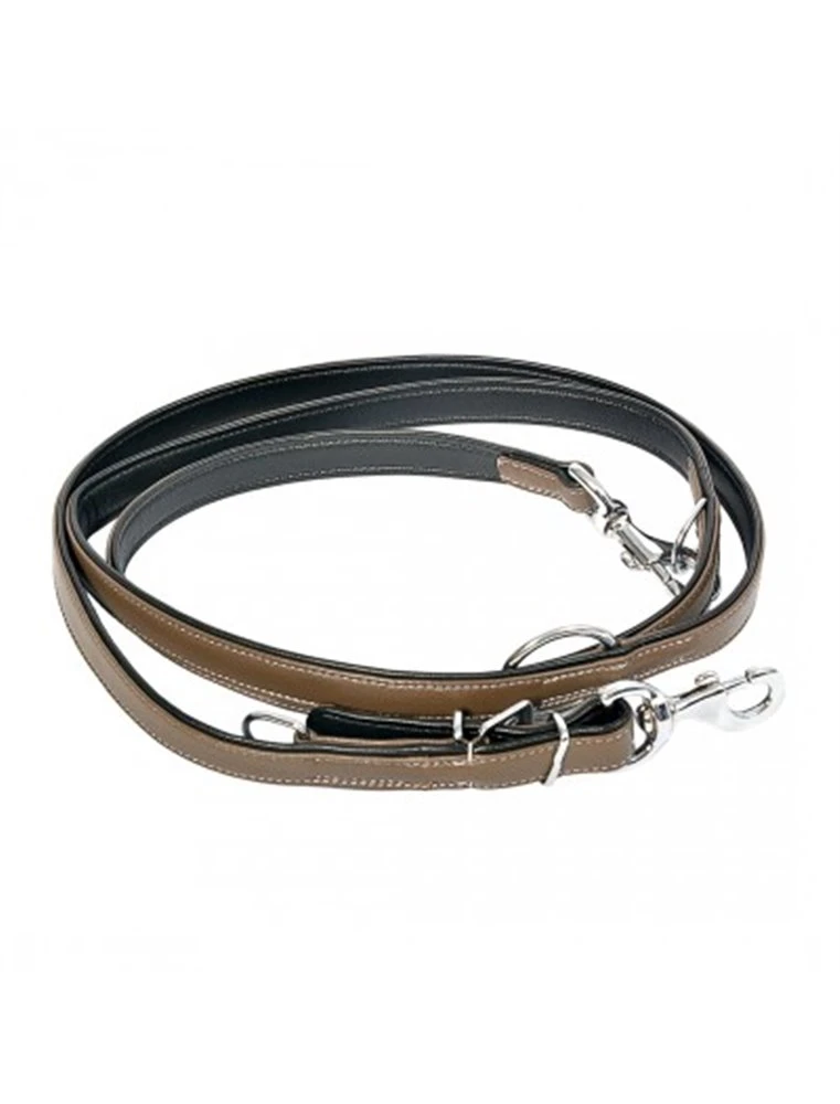 Comfortabele, kwalitatieve duo leiband van echt leer. De leiband voelt soepel en zacht aan de hand en heeft een stevige sluiting. Hij is verstelbaar tot 3 verschillende lengtes. Een elegante hond verdient een eigentijdse uitrusting. Daarom biedt Duvo+ een ruim aanbod van modieuze hals- en leibanden Žn harnassen onder het merk Diamond Dog. Smaken verschillen, dus is er voor elk wat wils.