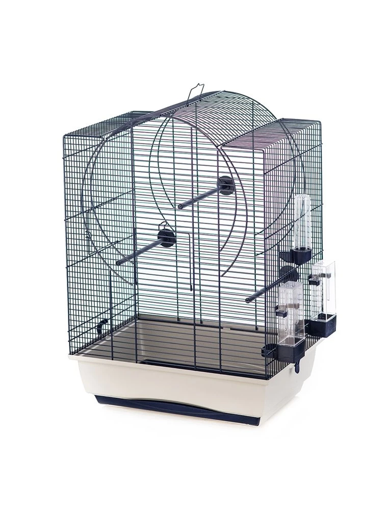 Wit-zwarte vogelkooi met accessoires