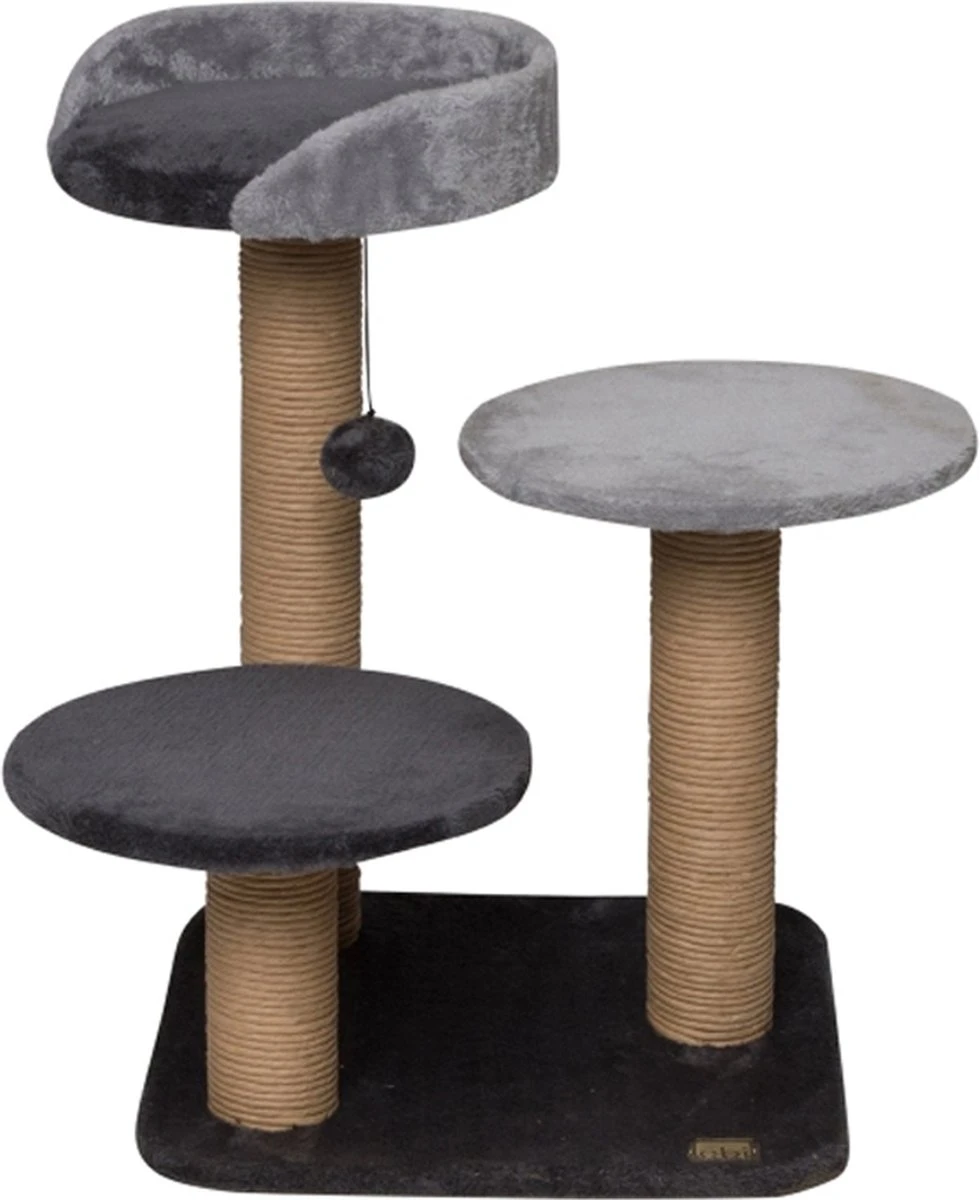 De krabpaal Mullberry heeft 3 plateaus. De bovenste is een comfortabel ligbed. Hieronder hangt een balletje waarmee kan worden gespeeld.