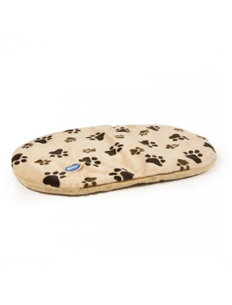 Het ovaalvormig ligkussen van Duvo+ met voetprint past perfect in een hondenmand, maar kan eventueel ook individueel gebruikt worden. Het kussen is bekleed met lekker zacht pluche, zowel aan de boven- als aan de onderzijde.