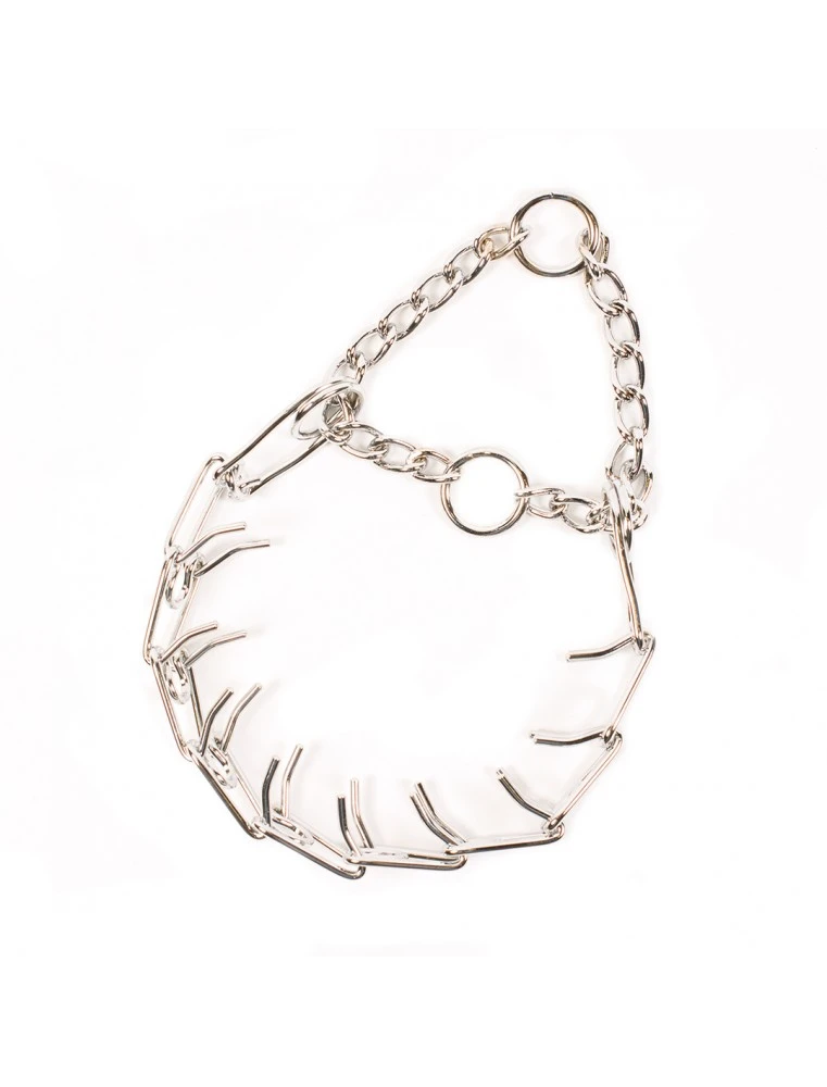 De fijne chroom sliphalsband met pinnen van duvoplus is gemaakt uit zeer sterk verchroomd zilverstaal. De halsband is geschikt voor trainingsdoeleinden, maar natuurlijk ook voor recreatief gebruik. Afmeting : 3.2mm