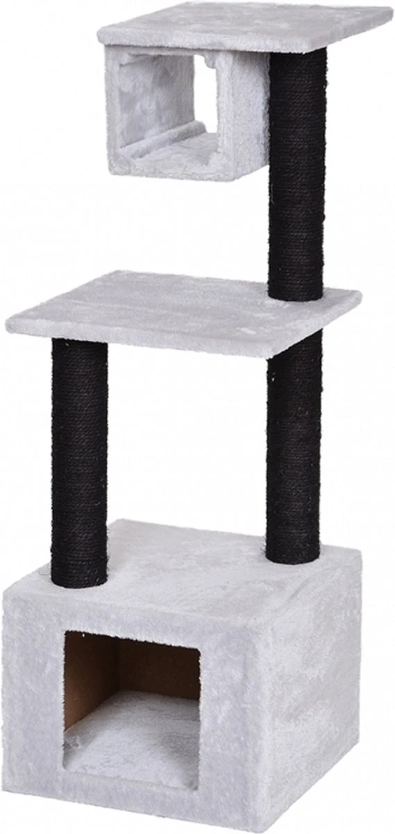 De Amaury krabpaal heeft een moderne uitstraling en is voorzien van het zachtste pluche. Op de bodemplaat zit een kattenhuisje waar jouw kat heerlijk in kan liggen om te ontspannen of om te slapen. In het kattenhuisje ligt een lekker zacht kussen, waardoor het huisje ook nog eens zeer comfortabel is voor jouw kat. Bovenop het kattenhuisje zitten 2 sisalpalen bevestigd waar jouw kat fijn aan kan krabben. Dit is erg belangrijk voor jouw kat, want met het krabben onderhouden ze hun nagels en zo blijven de nagels mooi en sterk. Deze krabpaal bevat ook twee zachte plateaus waar jouw nieuwsgierige viervoeter heerlijk kan liggen om de boel in de gaten te houden, want katten hebben graag het overzicht! Ook kan jouw kat spelen of liggen in de hangmat die onder aan het bovenste plateau is bevestigd. Kortom, deze krabpaal is uitermate geschikt voor jouw kat om lekker mee te spelen en uit te rusten!