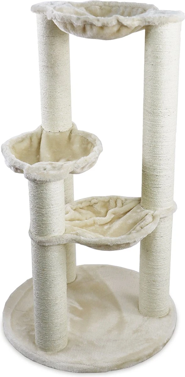 Deze krabpaal is fantastisch voor de ultieme relax kat. Met maar liefst 3 hangmatten, heeft je kat keuze genoeg. De hangmatten zijn gemaakt van zacht pluche, en je kat kan vanaf de bovenste verdieping mooi de boel in de gaten houden. Daarnaast is de krabpaal voorzien van 6 sisalpalen, die opgestapeld zijn tot 3 separate palen. In de krabbehoefte van de kat wordt dus ook zeker voorzien.